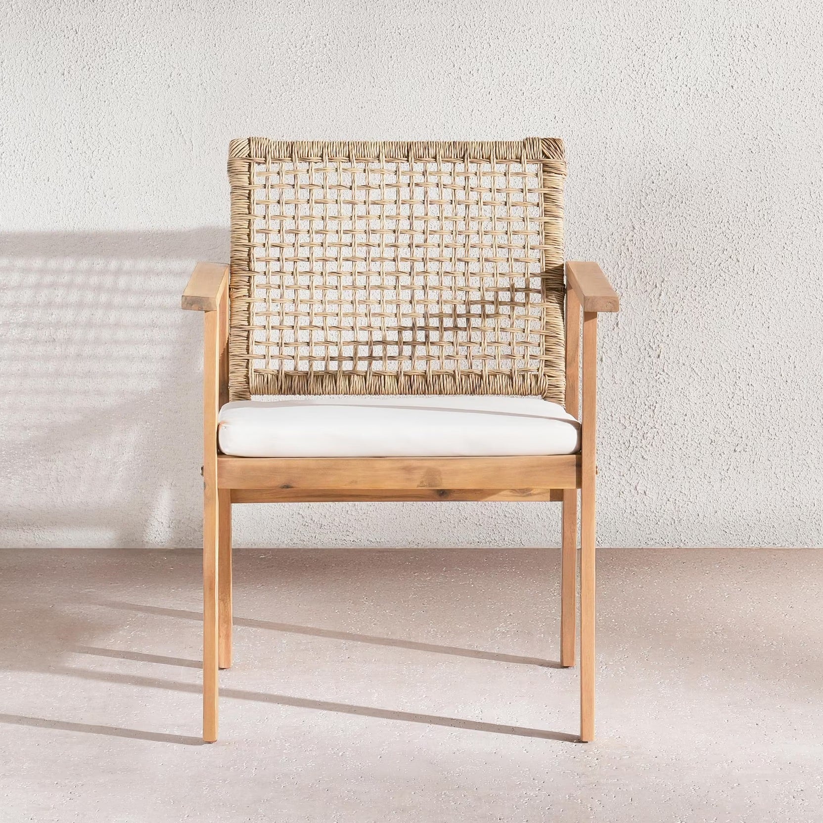 The Inver Outdoor Wooden Sofa Set combines natural wood craftsmanship with cushioned comfort for a relaxed seating experience. This 4-seater set includes a 2-seater sofa, two single chairs, and a matching rectangular coffee table.