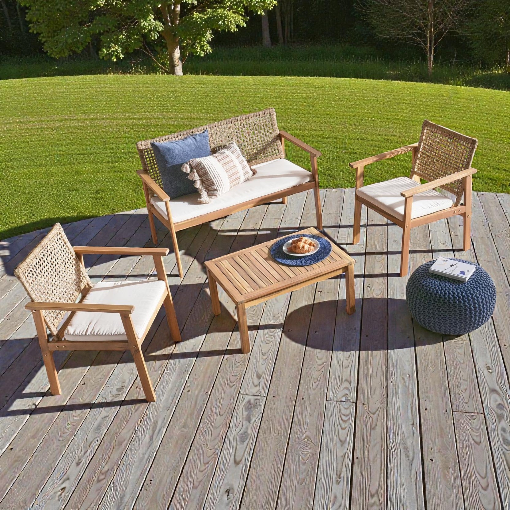 Inver Outdoor Wooden Sofa Set with Coffee Table, 4 Seating Capacity